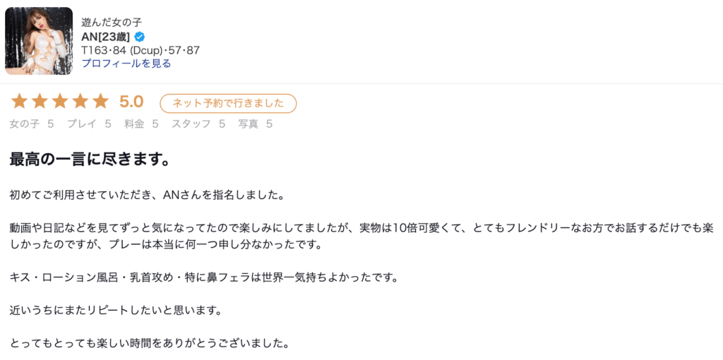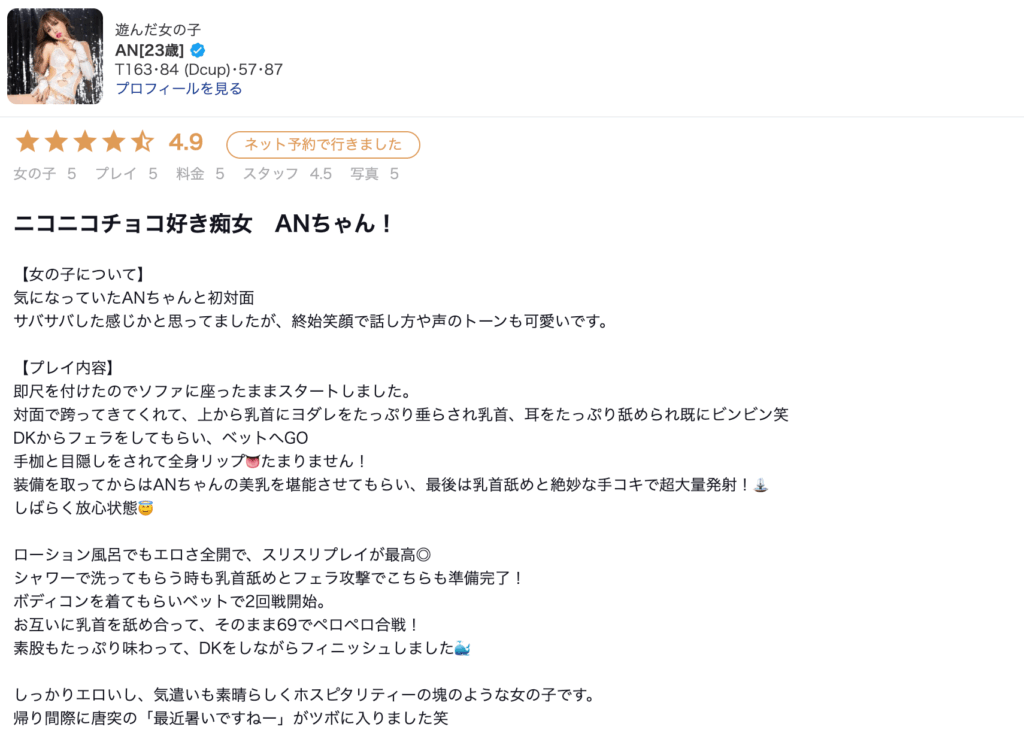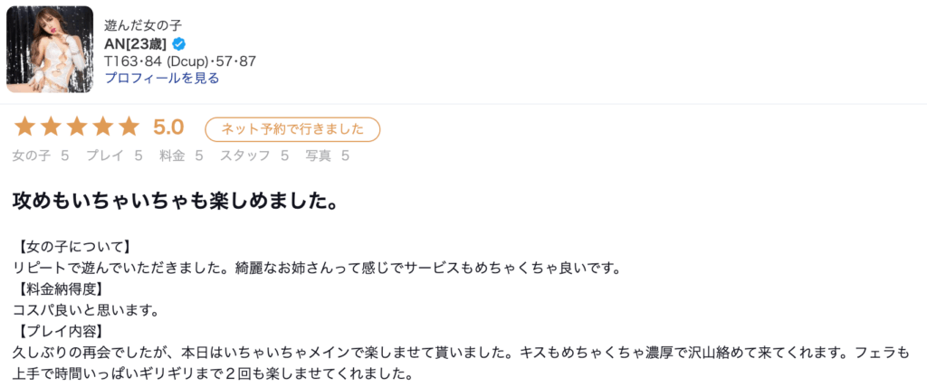 キス、リップ、フェラと全て濃厚で最高なんだとか!