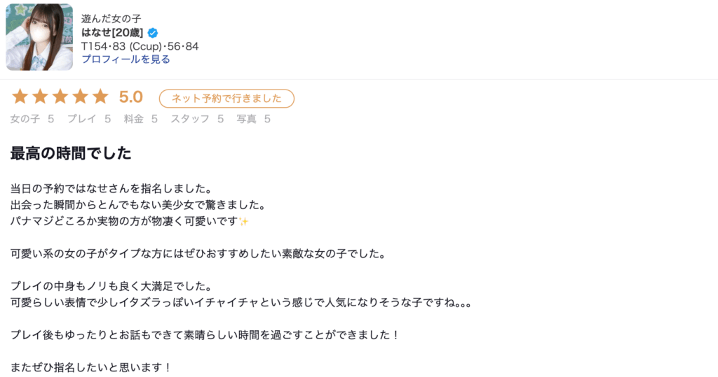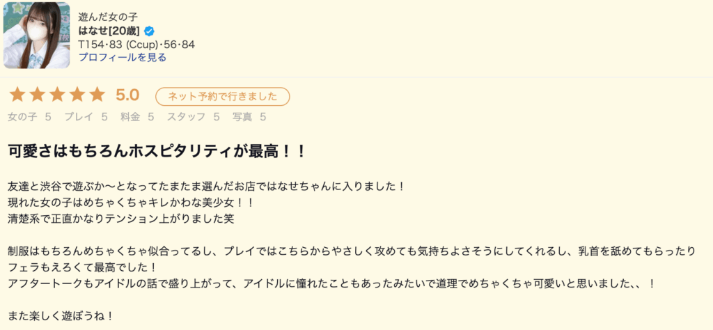 渋谷のデリヘル「まだ舐めたくて学園渋谷校~舐めたくてグループ~」に在籍する「はなせ」のプロフィールをご案内。スリーサイズや基本情報を確認できます。