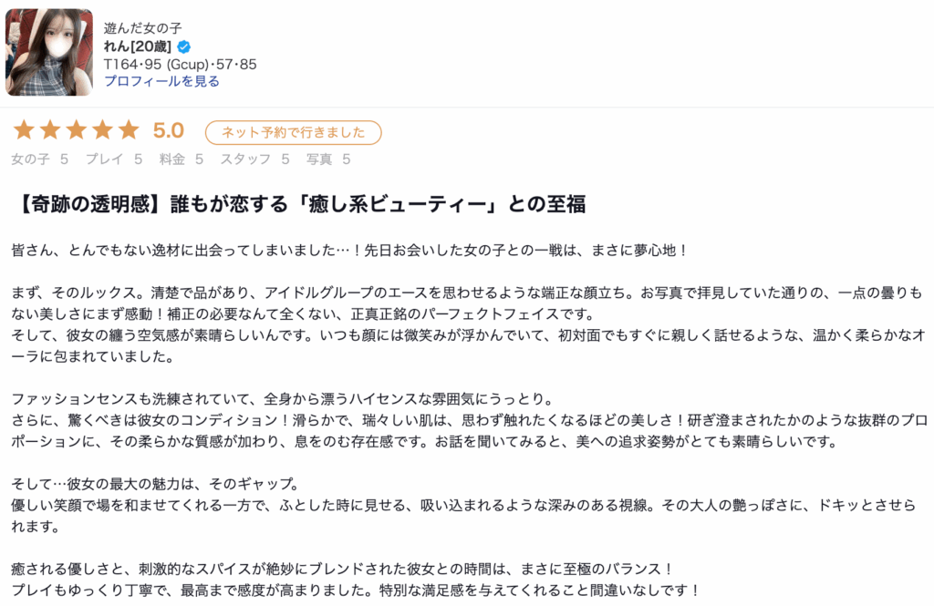 新宿・歌舞伎町のデリヘル「風神会館」に在籍する「れん」のプロフィールをご案内。スリーサイズや基本情報を確認できます。